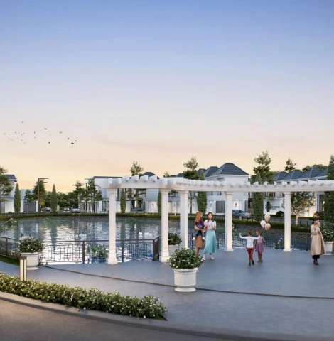 Suasana kawasan terasa sejuk dan asri berkat kehadiran area hijau serta danau yang menambah kesejukan alami.