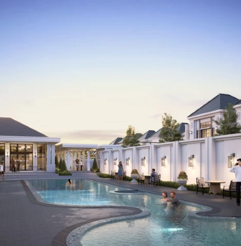 Club house, lapangan basket, area bermain, kolam renang, ruang komunitas, dan lain sebagainya.